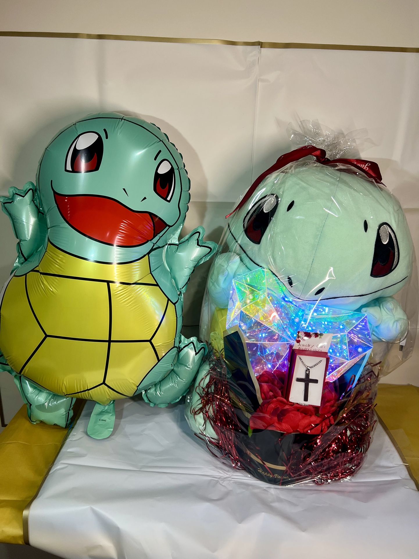 XL Squirtle Pokémon Valentines Gift W / Necklace & Heart Light