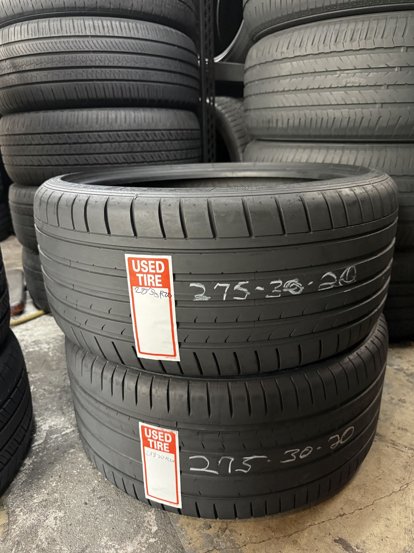 Good condition, price includes installation, Mount and balance. 275/30 R20 (Tire brand) Dunlop Price: $180 (set of 2/ $90each) Wheel Alignment available Fast same-day service In Stock Davie FL For: Bmw 5,6,8 series, audi rs4/5, Mercedes Benz c-class AMG, etc.