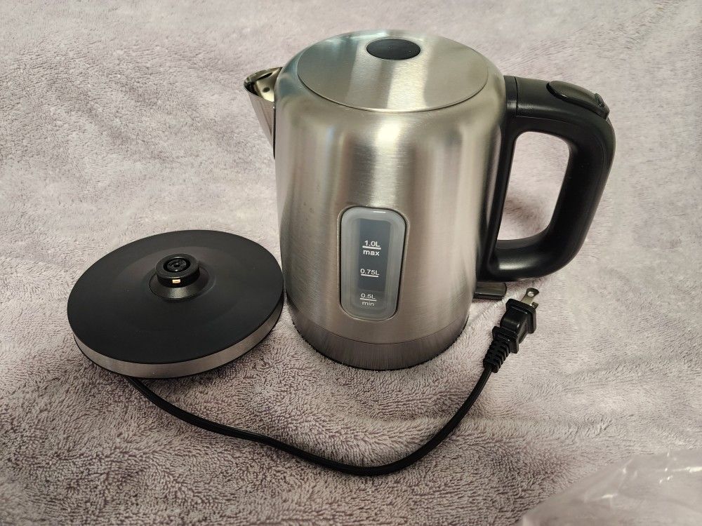 Brand new inbox electric tea kettle stainless steel fills one l of Max quick boiling water amazing for quick hot cups of tea Or quick Cup of soup