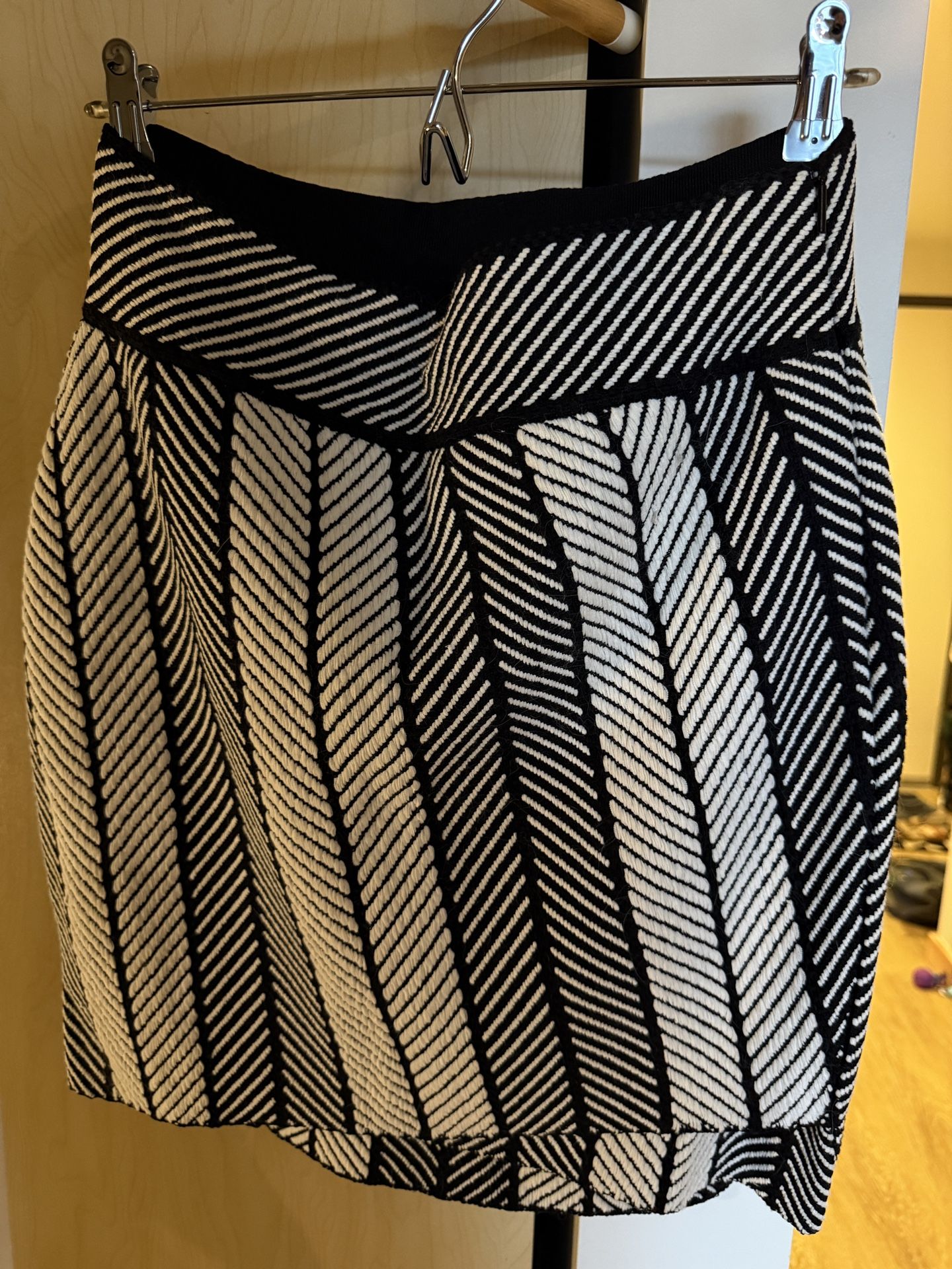Brand new Maje Paris knit mini skirt with tag. Elegant black and white geometric pattern with a flattering fitted silhouette. • Brand: Maje Paris • Condition: New with tag • Knit fabric • Black & white geometric pattern • Stylish and easy to pair size 3 Perfect for work, dinner, or casual chic outfits.