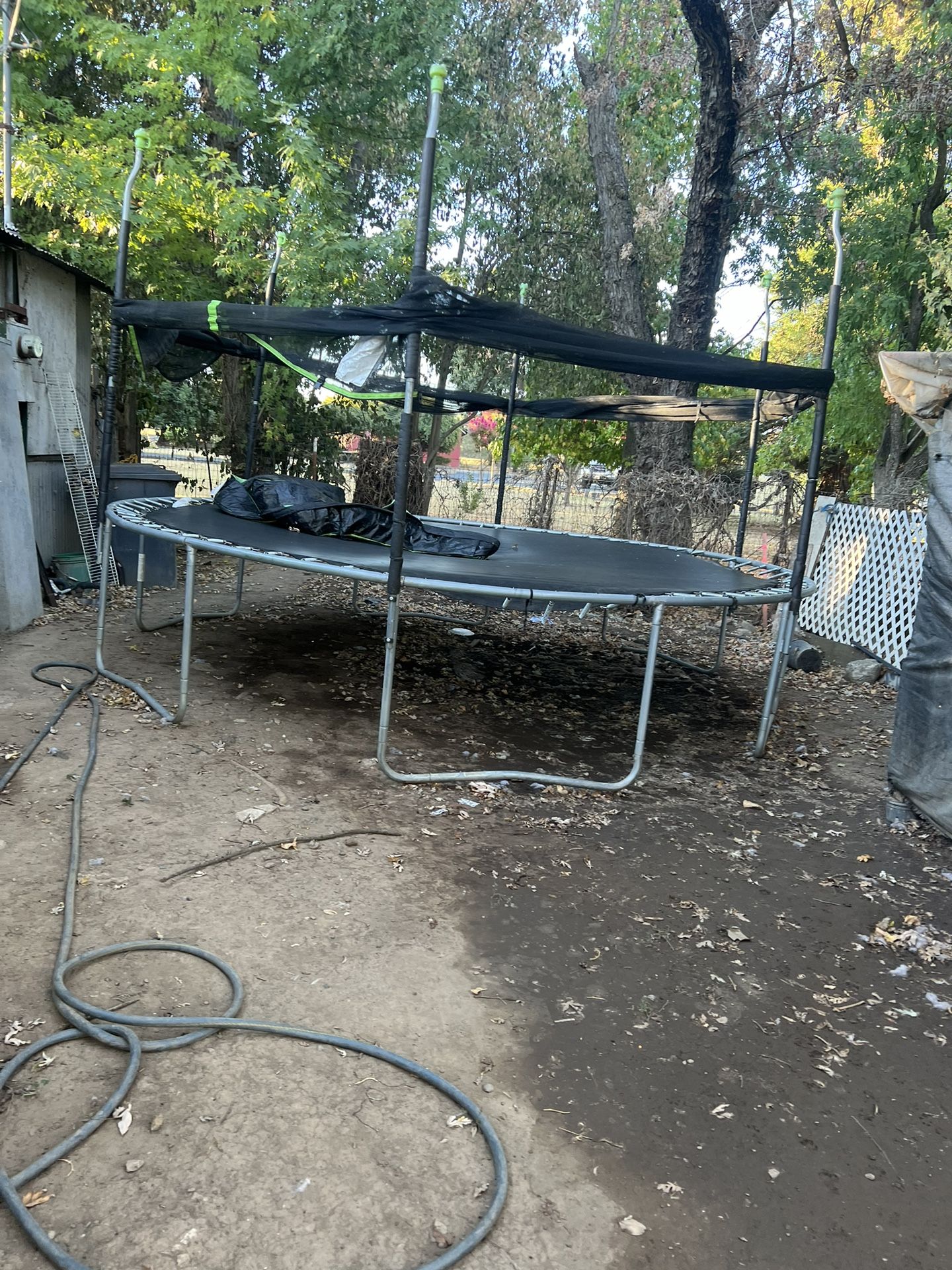 Trampolín está casi nuebo nomas lo conpramos y asi se quedo nomas le faltan dos resortes se le cayeron y no los encontré