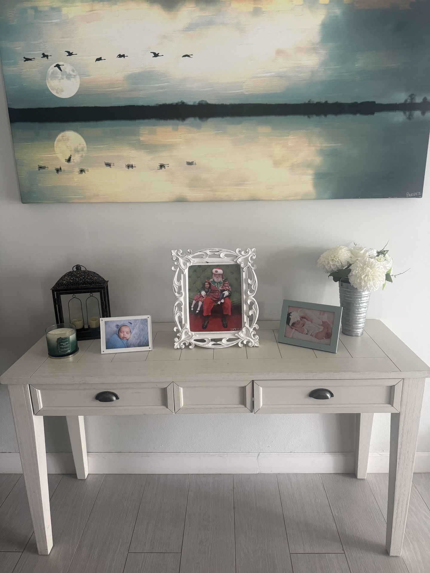 White Console Table with two drawers- Modern Farmhouse