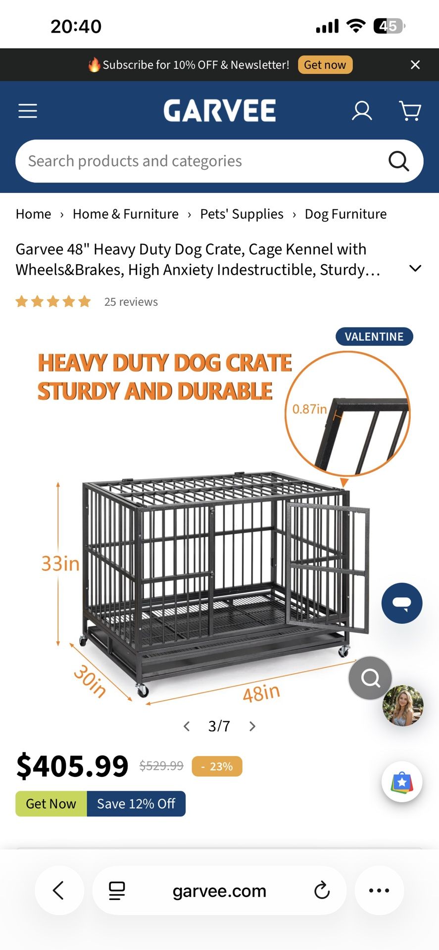 Garvee 48” Heavy Duty Dog Crate. Large kennel With Wheels and brakes, High Anxiety Indestructible, Sturdy Locks Design, Double Door and Removable Tray for Large Dogs. 48”x 30” x 33”
