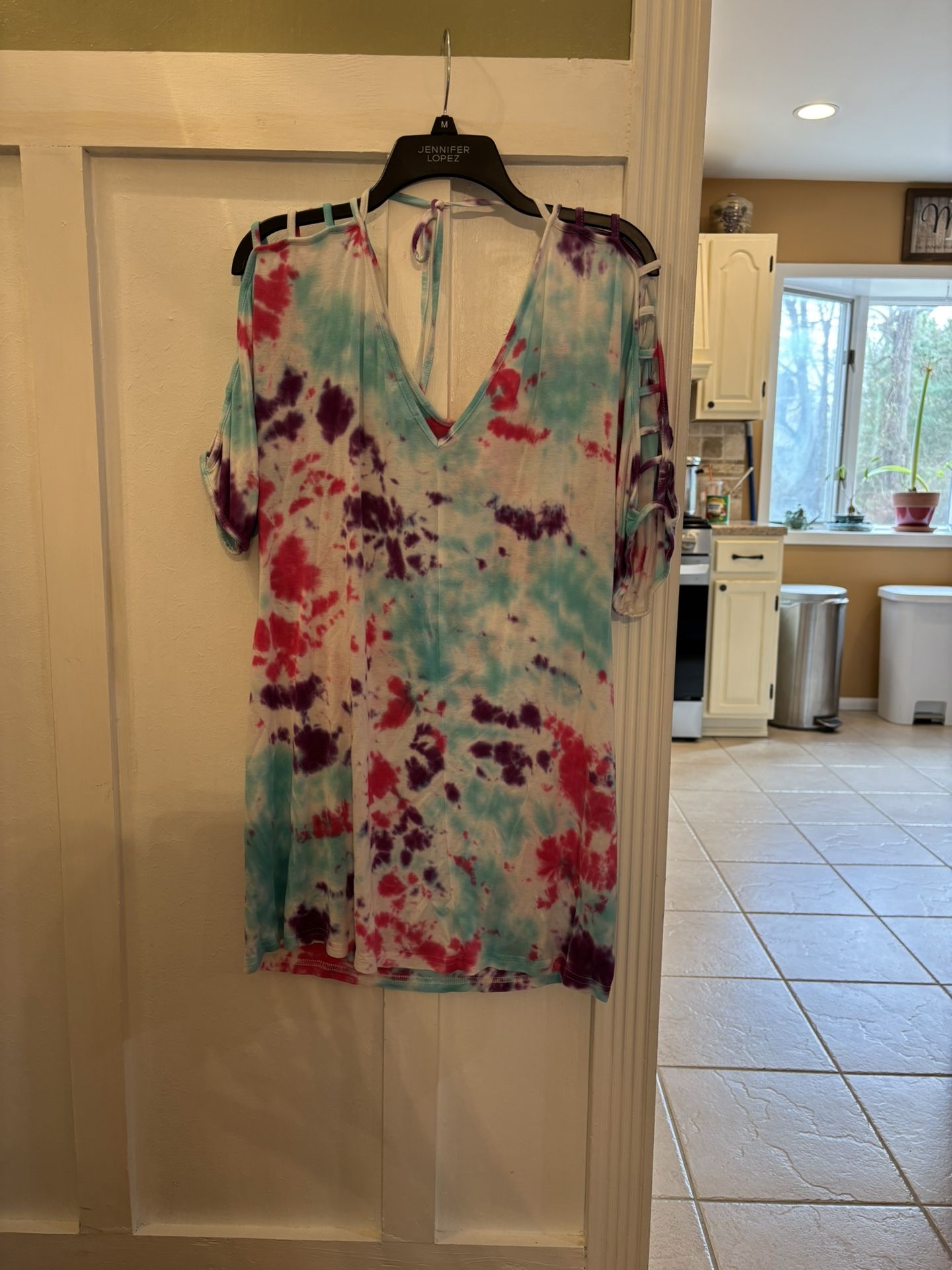 Tye Dye Beach Cover Up Cold Shoulder Sleeves Ties In The Back Size Medium