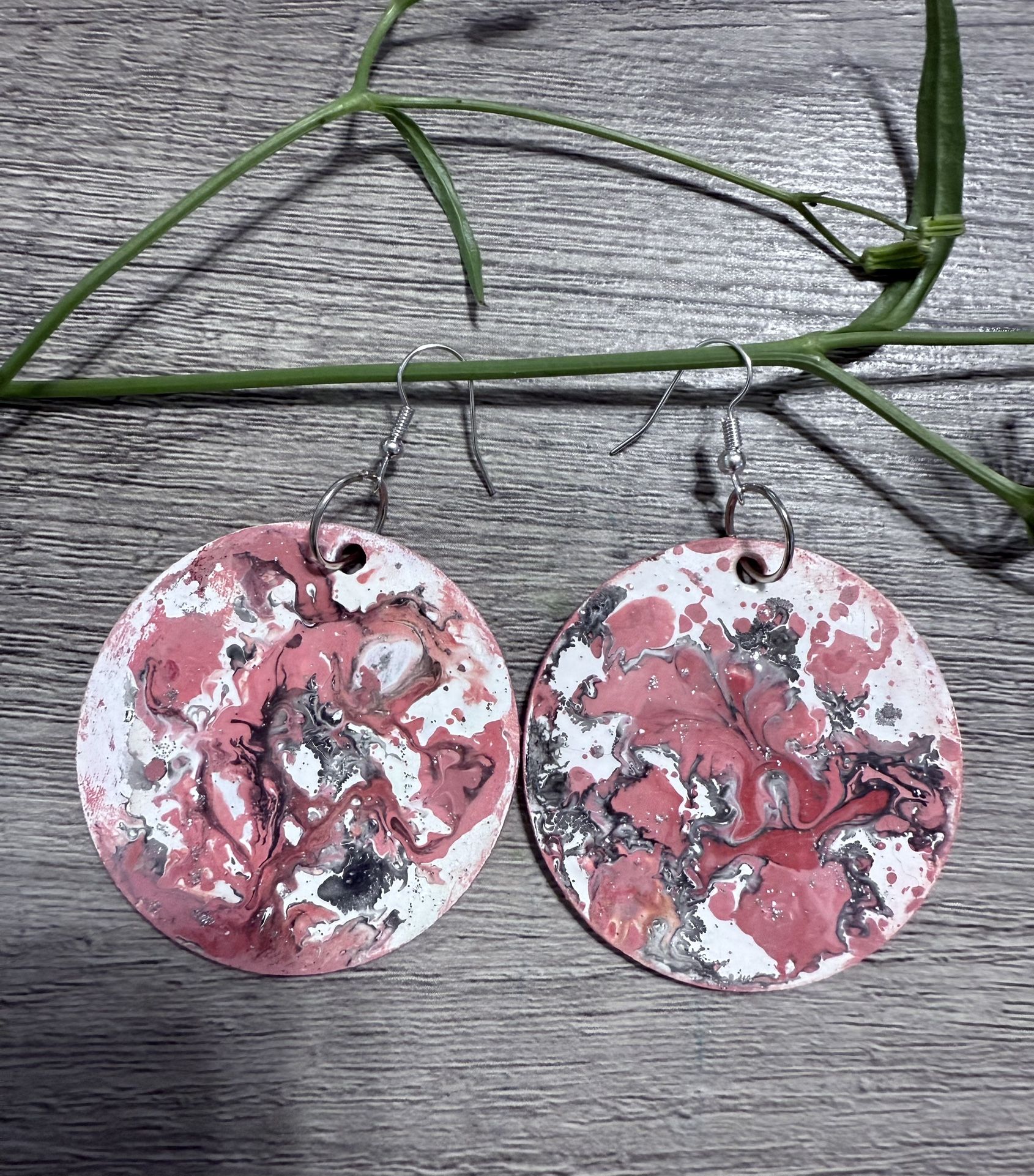 Barbie Pink Wood Dangle Earrings: Hand-Painted Marble Effect, Boho Style