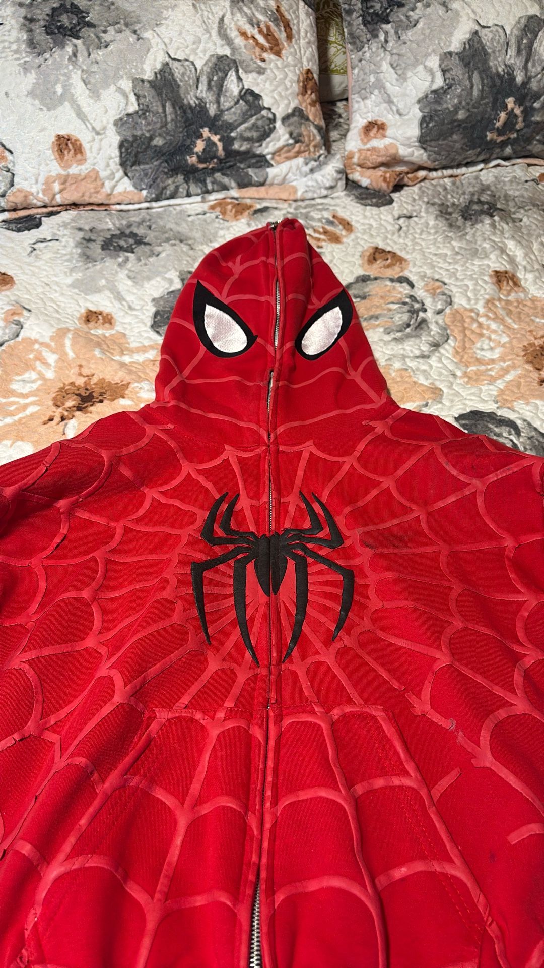 Spider Man Y2k Puff Print Fully Zipping Sweater