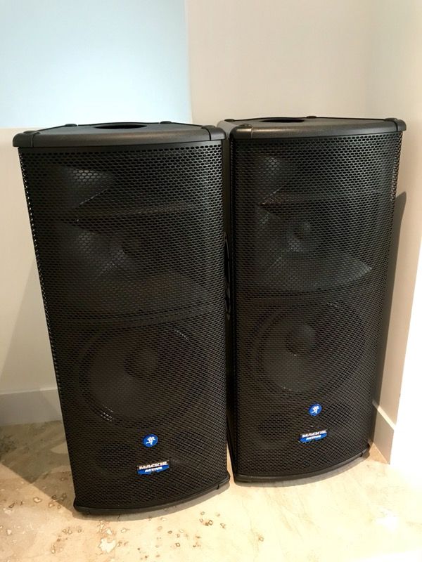 Mackie SR1530 3-Way Active Sound Reinforcement Speaker System In perfect WORKING condition, if you are seeing this the item is available for sale. Happy Holidays! Dimensions Height: 43.9 in (111.6 cm) Front Width: 19.1 in (48.4 cm) Rear Width: 13.9 in (35.2 cm) Depth: 18.1 in (46.0 cm) Net Weight: 111.25 lbs. (50.6 kg) Amplifiers Low Frequency Burst Capability: 300 watts Rated THD: <0.05% Design: Class G High Efficiency-High Current Mid Frequency Burst Capability: 100 watts Rated THD: <0.1% Design: IC Based High Frequency Burst Capability: 100 watts Rated THD: <0.1% Design: IC Based