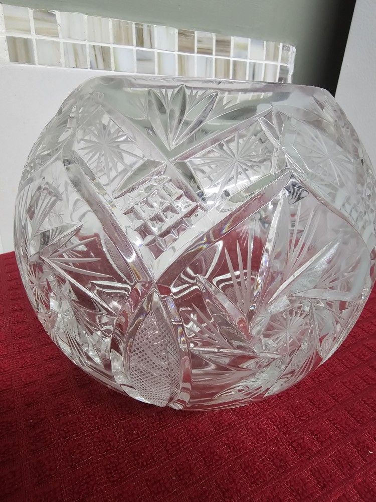 Stunning Hand-cut Vintage Crystal Rose Bowl. It's Heavy, 24% Lead Crystal + it features Gorgeous Starbust Pinwheel Designs! Elegant by itself or with Flowers. No Box/Like New Condition. Great Christmas Gift Idea! "Cash & Carry" Only. I meet in Tamiami, Fl 33184.