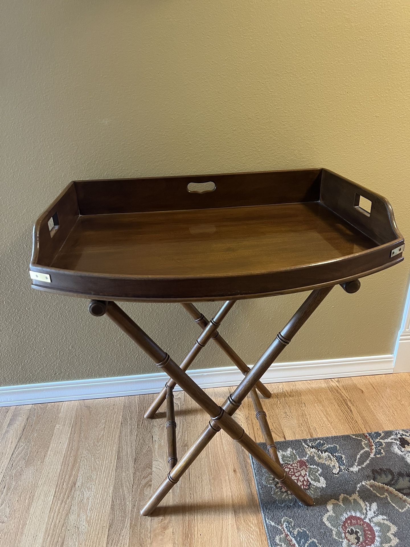 Henredon Tray Table – Historic Natchez Collection Elegant and functional vintage tray table from Henredon’s Historic Natchez Collection. Crafted from rich wood with a removable tray top featuring raised edges and cut-out handles for easy serving. The foldable X-frame legs offer both stability and portability. Underside includes original Henredon metal plaque and is stamped with serial number 1 50191 – a mark of authenticity and craftsmanship. 📐 Dimensions: 30" W x 23" D x 34" H 🏡 Ideal as a side table, serving tray, or accent piece in classic or traditional interiors 📍 Pickup in Kent’s EastHill