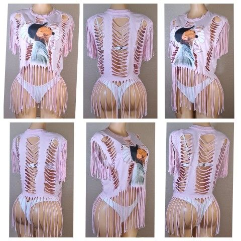 Gorgeous pink Custom Designed Chris Brown fringe tshirt. Unique one of a kind design. Size Medium. Visit My page for more Custom tshirts