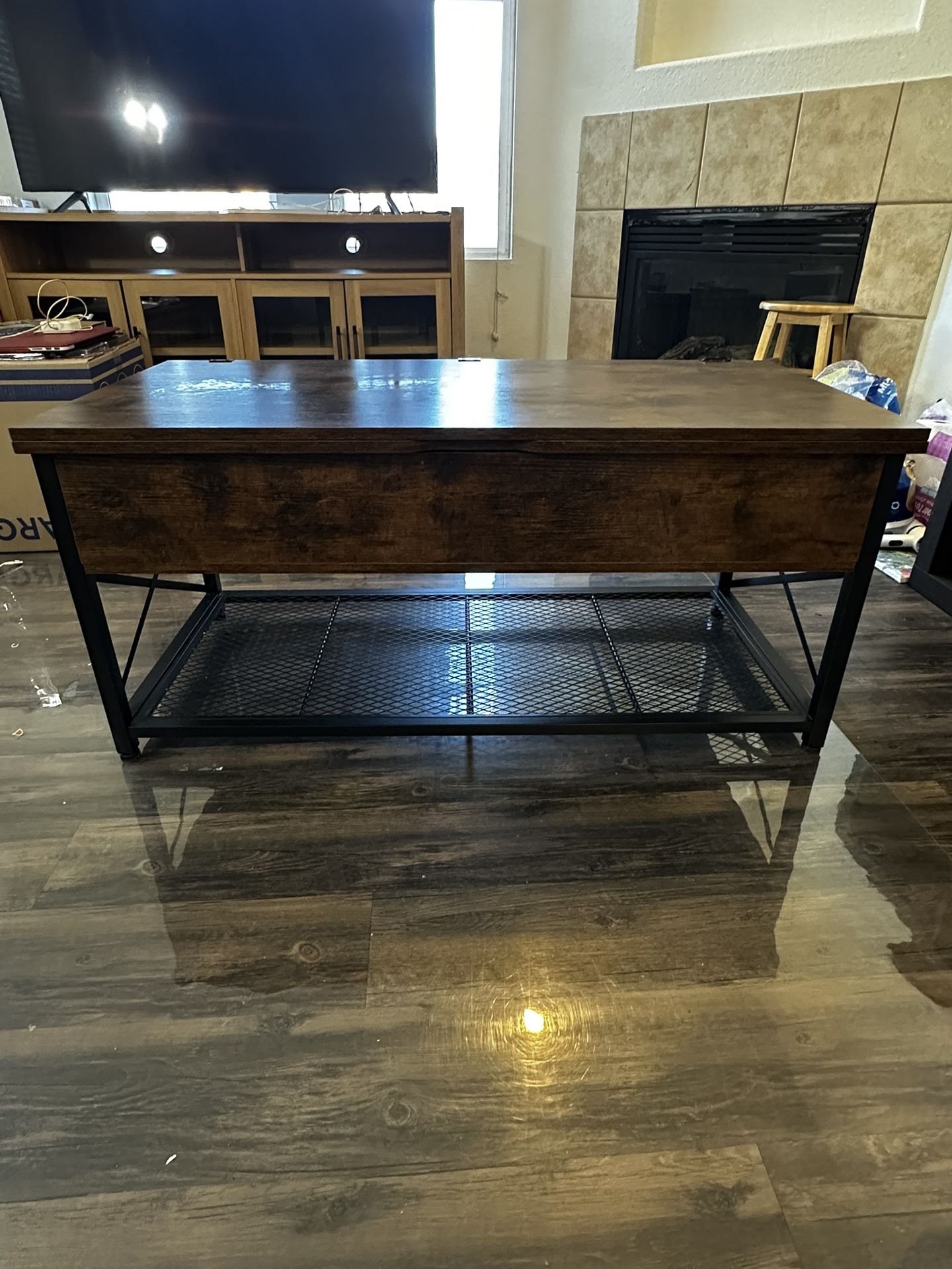 Amazing coffee table , can keep it as simple or extend out with hidden storage underneath the table . Can extend out to full table .