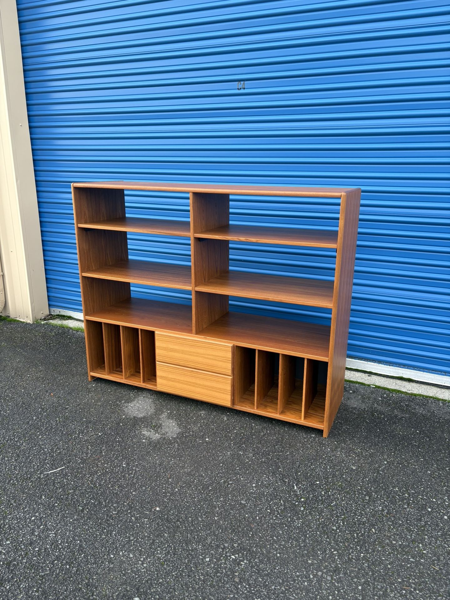Mcm Danish teak record shelf Made in Denmark -beautiful Danish shelf with ample storage for records, has slide out shelves for record players, other stereo equipment. Record slats and upper shelves are all removable if desired! Also had 2 functioning drawers. -the shelf is a unique size compared to most and is nice and sturdy. -has minimal wear and tear most notable is the small chip on the bottom back corner Check out my page for more mcm pieces Located in lake Steven’s can deliver for a fee Dimensions: H:47 1/2” W:59” D:18 3/8” Antique Vintage Scandinavian