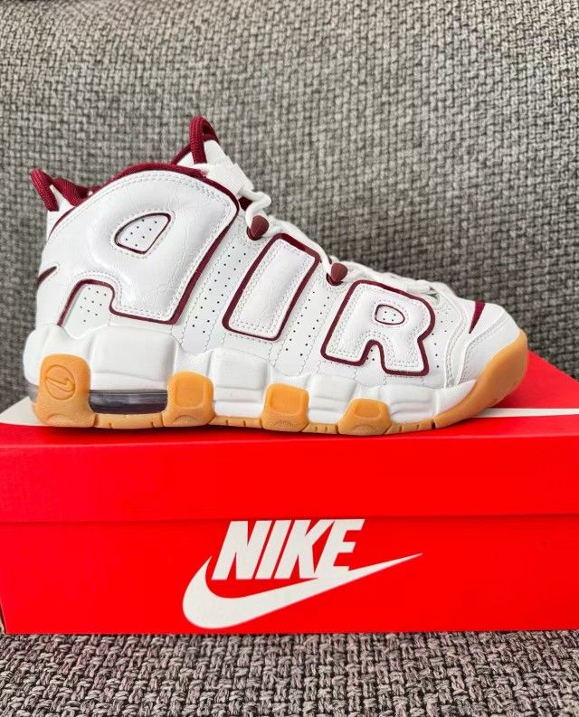 Nike Air More Uptempo Synthetic Leather Leather Comfortable and versatile Wear-resistant Mid-top Basketball Shoes Unisex White Red