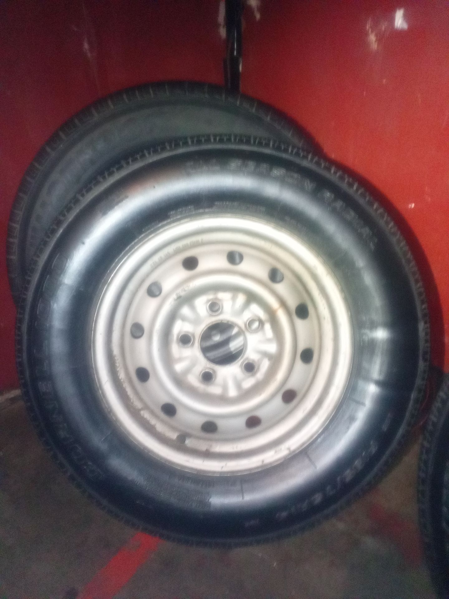 -2 Radial cornell 1000 tires -Bolt Pattern: These wheels are frequently found with common lug patterns like 5-lug (5x4.5") -Tire Size:Common tire sizes for this type of steel rim include 225/70 R14, -Vehicle Applications: These steel rims are standard for vehicles such as the Toyota Hiace, Nissan Vanette, and various trailer types like flatbeds and utility trailers. -2 tires , $20 each ,used but great condition