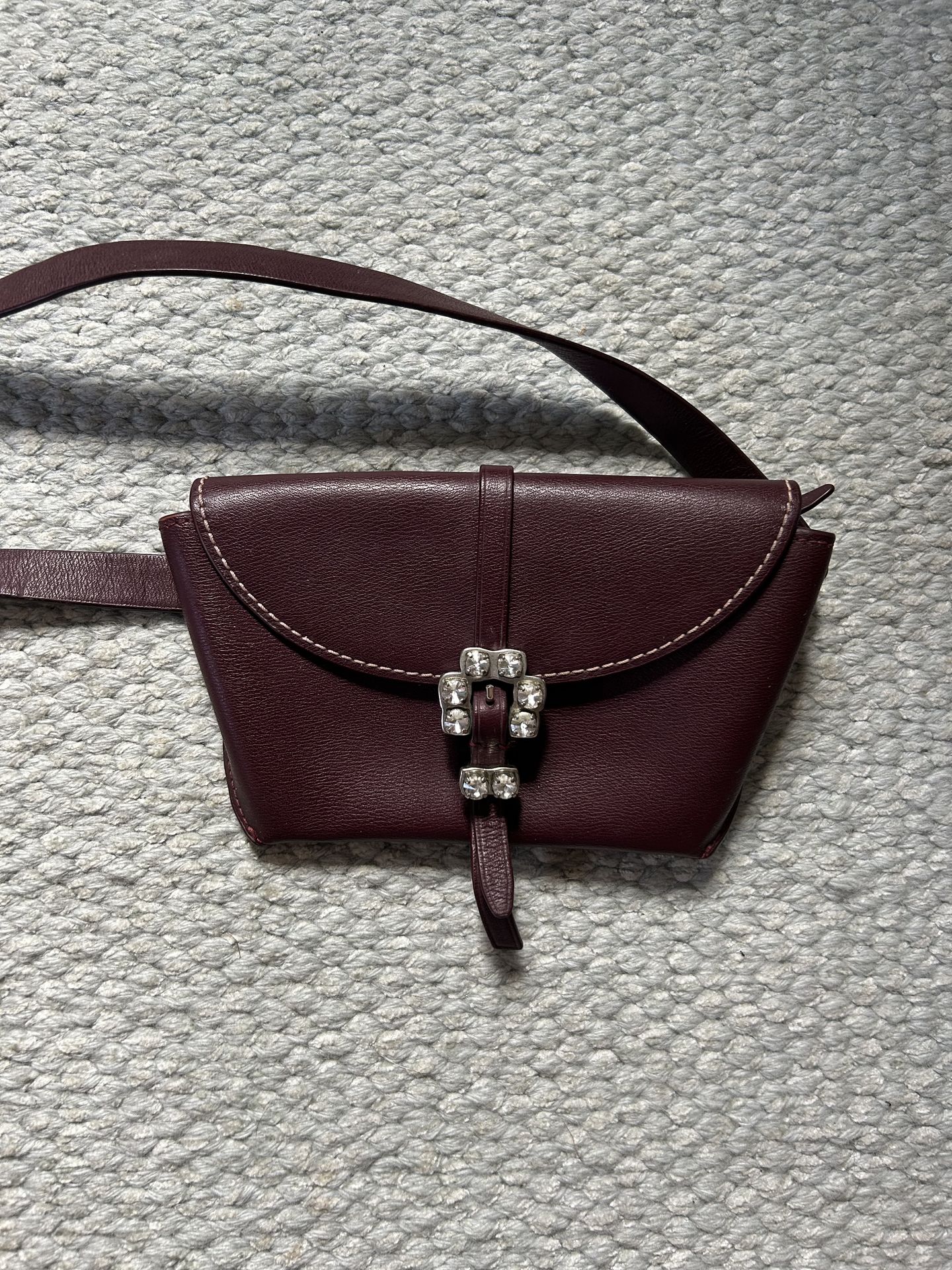 Genuine leather elegant belt bag in burgundy color. Good like new condition.