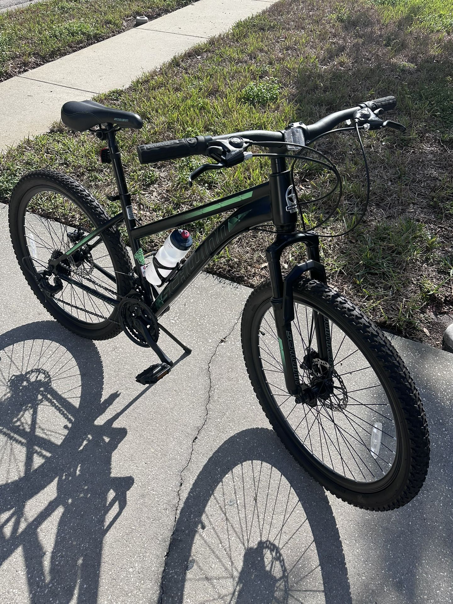 Selling my 10 out of 10 like new mint condition Schwinn bike. Only used once. Rides like a champ. 26-inch wheels. Everything works. Breaks are good, air in tires, all gears shift smoothly. Front and rear disc brakes. Front shocks. Kickstand. Brand new never used water bottle. Switching to electric bike so don’t need this one. Cash or Zelle. If posted it’s available.