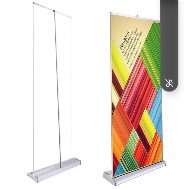 Brand new. Never used. Retractable, expandable. Carrying case included. For displaying signs and banners.