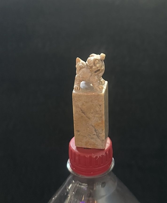 VINTAGE MID CENTURY CARVED MARBLE PLINTH with A FOO DOG ON TOP. IT MEASURES ABOUT 3.00" HIGH and IS UNIQUE IN AS MUCH as THE ACTUAL INK or WAX SEAL at BOTTOM WAS NEVER CARVED INTO THE MARBLE SO IT IS MORE LIKE A STATUE THAN A SEAL. UNDAMAGED AND VERY WELL CARVED.