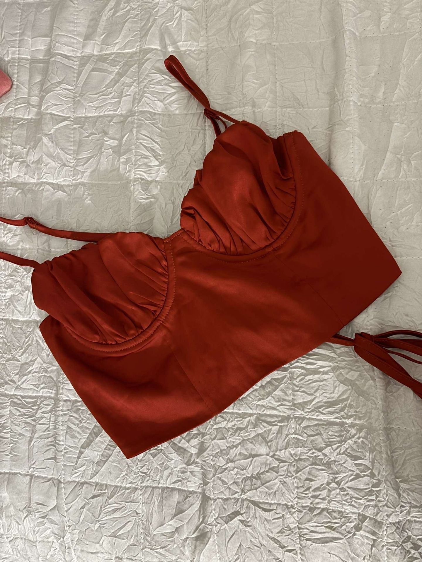 - Women’s cropped adjustable top - Brand: SHEIN - Size small - Worn like twice - Very nice condition! - Copper color