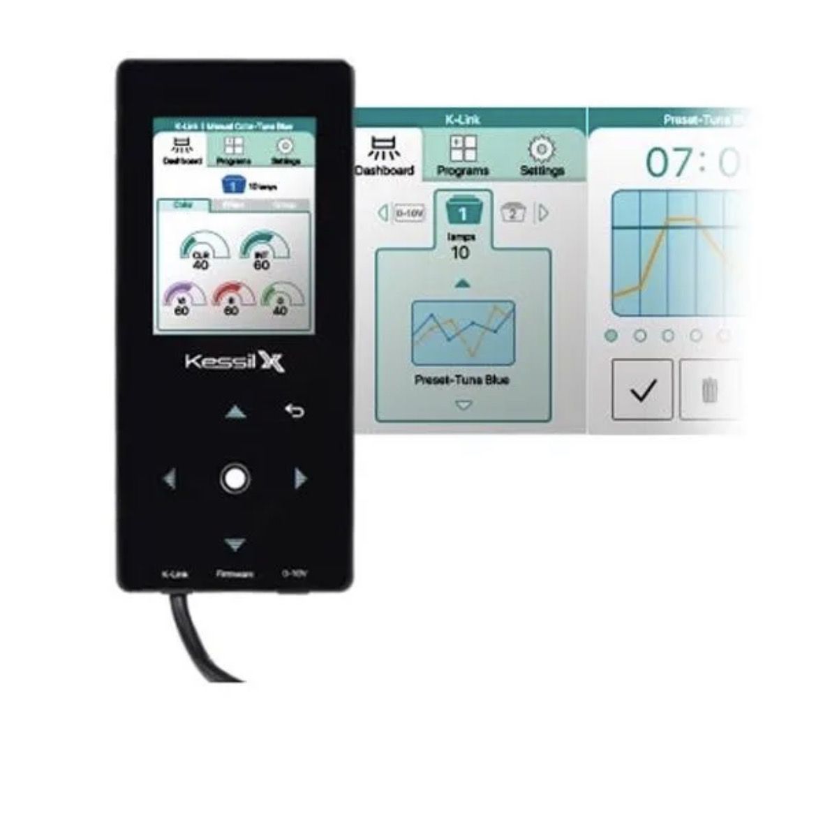 Equipped with flawless touch control and a vivid color display, the Spectral Controller offers effortless light control at the touch of your fingertips. Its straightforward approach to light control programming allows for endless customization options without the confusion. The sleek, modern design ensures a beautiful and cohesive setup that won't disrupt the look of your aquarium. Intuitive and Affordable Light Control Equipped with flawless touch control and a vivid color display, the Spectral Controller X is effortless light control at the touch of your fingertips. Its straightforward approach to light control programming allows for endless customization options without the confusion. The sleek, modern design ensures a beautiful and cohesive setup that won't disrupt the look of your aquarium. Smart K-Link Communication The new K-Link communication method is an upgrade of the easily plug & play 0-10V, allowing users to network multiple A360X together and set individual groups to run their own programs. K-Link is also a two-way communication, meaning the Spectral Controller X can detect the number of lights in the network, the status of the lights, etc. One Controller, Two Ports - Backward Compatible Each controller is equipped with one K-Link port and one 0-10V output port. The K-Link port allows users to connect to the new A360X, while the 0-10V port is for Kessil’s 0-10V light fixture. Program Mode Features two ways of setting a customized light schedule to match individual tank needs. Quick Set: Create unique dawn and dusk effects by altering light intensity and color throughout eight different time points. Acclimation Mode: Simplify the introduction of new lights to a tank or new corals to an existing setup with acclimation mode. The acclimation timeline can be customized to suit specific needs. Manual Mode Manual Mode: Instantly tune color and intensity for on demand light customization. Compatibility The Spectral Controller X is compatible with the A360X and all the 0-10V Kessil lights What's in the Box Spectral Controller X (x1) Magnetic Back Plate (x1) Micro USB Cable (for firmware update) (x1) K-Link Cable (10’) (x1) Screws (x2) Nylon Anchor (x2)