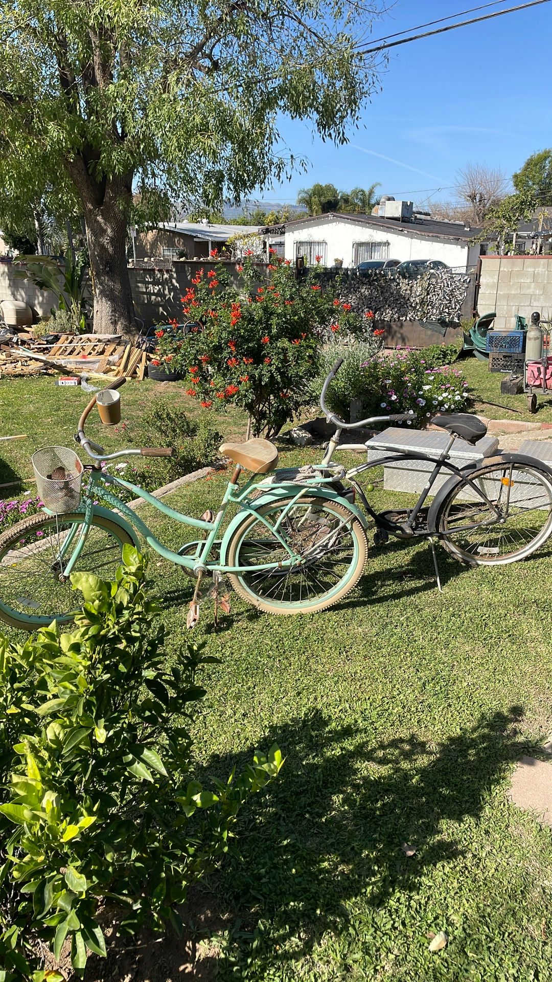 I have 2 beach cruisers I’m selling as is. Perfect project for a couple to get these going again and enjoy them together. I am selling as is so yes they need a little tlc however once cleaned and oiled possibly al new tubes and grips they are great bikes for the price please I’d really like to get $50 for the set so I’d really not like asking to reduce the price.