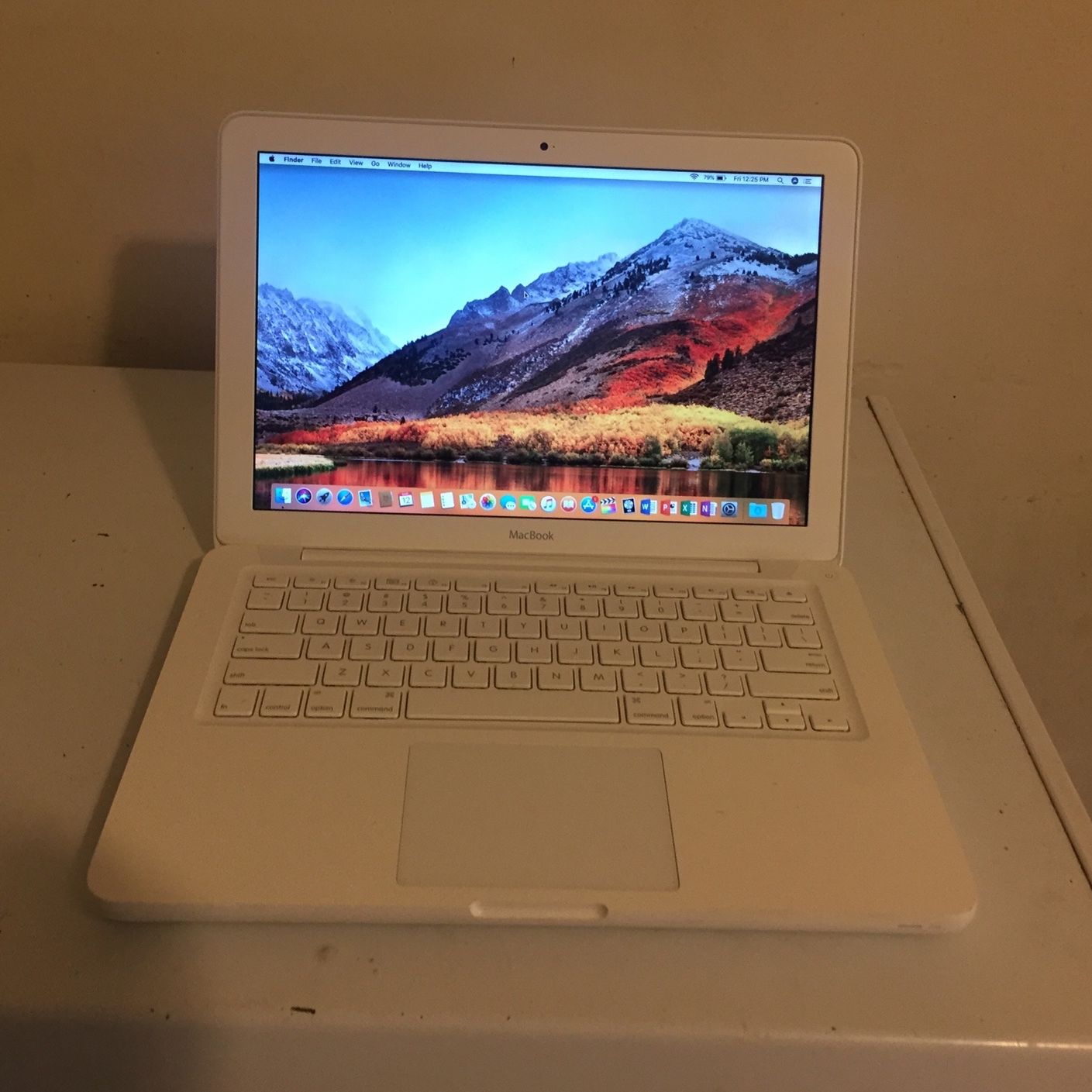 MacBook late 2010 high Sierra operating system 4gb Ram 250 hard drive Office 2016 Final Cut Editing software Logic Pro x music software webcam works (bad cd rom)comes with charger. I’m a tech so it’s all good