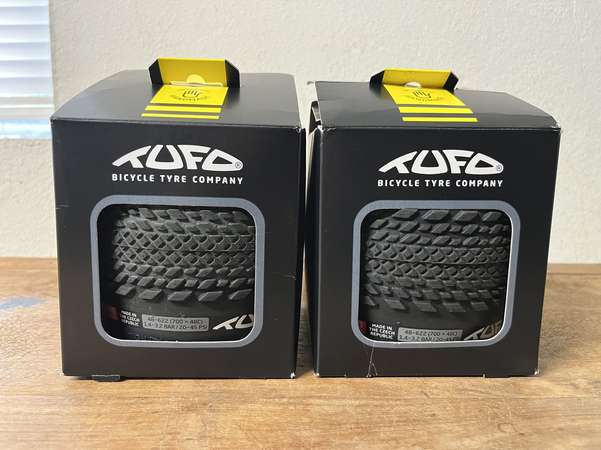 TUFO Gravel Thundero HD 700x48 tires (pair) Condition: like new (mounted dry once to test chainstay clearance on bike) Reason for selling: just a tad too wide for my bike unfortunately Originally purchased from "Maine Cycles" Feb 3, 2026 About the tires: The Thundero can do it all. The middle part of the tread, composed of tightly packed cubes, creates speed and surprisingly quiet rolling with three indented rows of knobs on the outer tread, which bite literally into any surface. This provides excellent grip even on unpaved surfaces and allows you to turn sharply. The HD version extends the existing gravel range with focus on higher loads and operating pressures. Modified construction with stronger warp threads achieves higher durability with only a 30 gram weight increase. The wide tread and the durable flexible Jubena layer covering the sidewalls protect the tyre from receiving damage from stones. A puncture resistant ply under the tread minimises the risk of punctures and contributes to the overall reliability of the tyre. The high TPI casing construction, together with the soft tread compound, smoothes out any surface and prevents the tyre from bouncing on uneven surfaces. The Thundero is also made to be long lasting and guarantees high mileage. Bicycle Rolling Resistance Review: RATING: 5.0 / 5 TEST VERDICT: Highly Recommended https://offerup.co/faYXKzQFnY?$deeplink_path=/redirect/