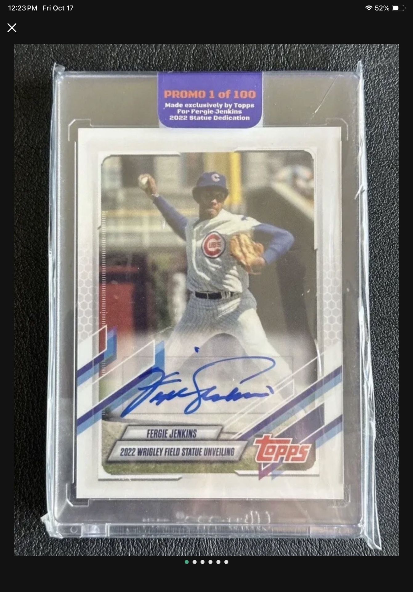 Fergie Jenkins cubs Rare Autographed Card 1 Of 100
