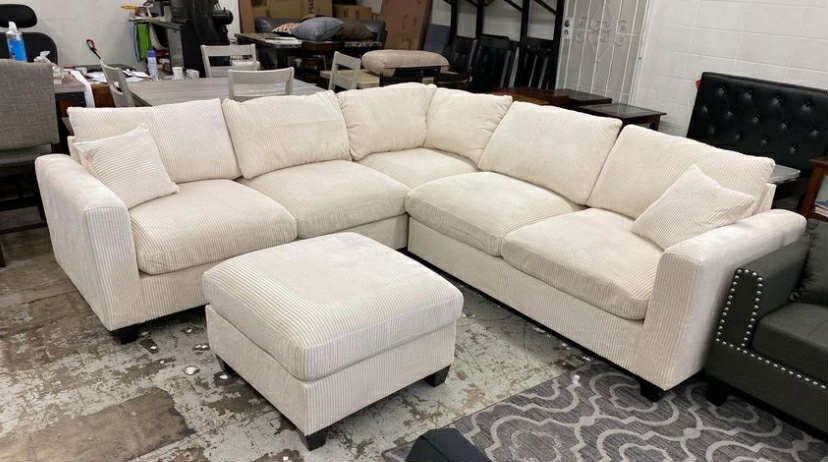 New Corduroy Sectional Couch with Ottoman! Includes Free Delivery 🚚!