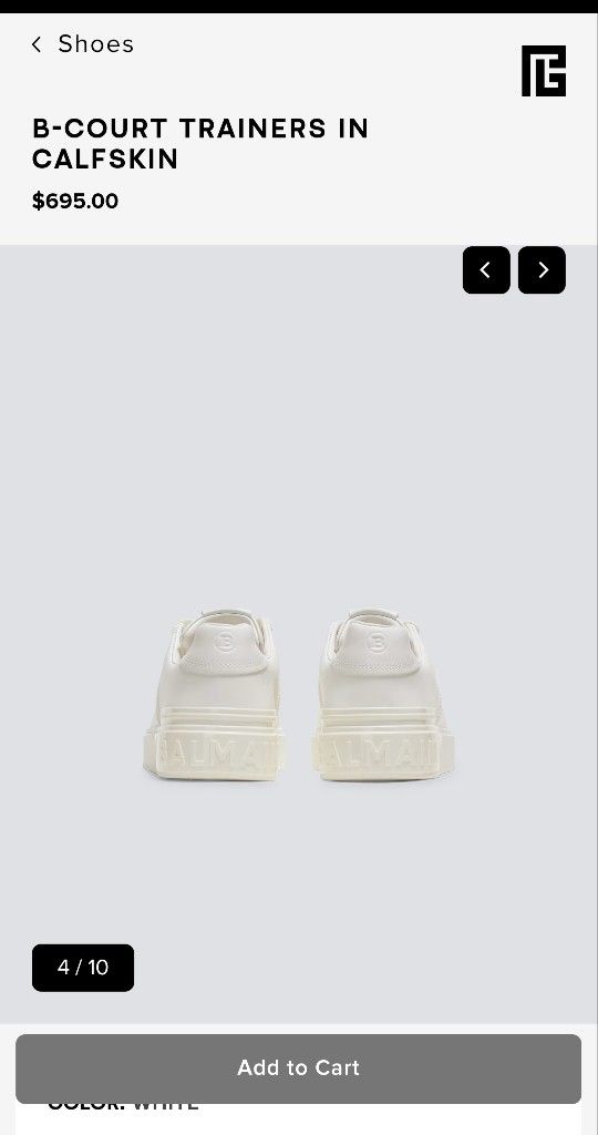 Second hand at a discount. Original price on Balmain website is $695! "B-Court trainers in calfskin Leather insert on tongue with Balmain logo Soles with tone-on-tone Balmain logo This item fits true to size (select your usual size) Main material: calfskin Made in Italy" In original condition from original owner, slightly dirty so a quick wiping down is needed. I sprayed them inside with Lysol to freshen them up for immediate use. Price is negotiable