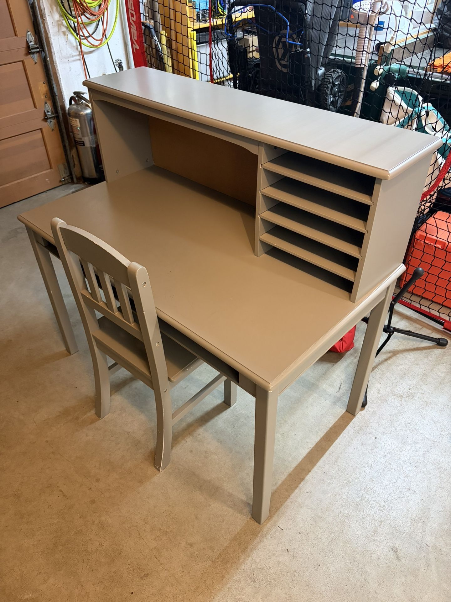 IKEA kids desk with chair. Has a few scuff marks but in overall good shape and is stable. Dimensions: 44” wide, 24” deep, 40” tall Desk top is 26” tall Cash only, you pick up.