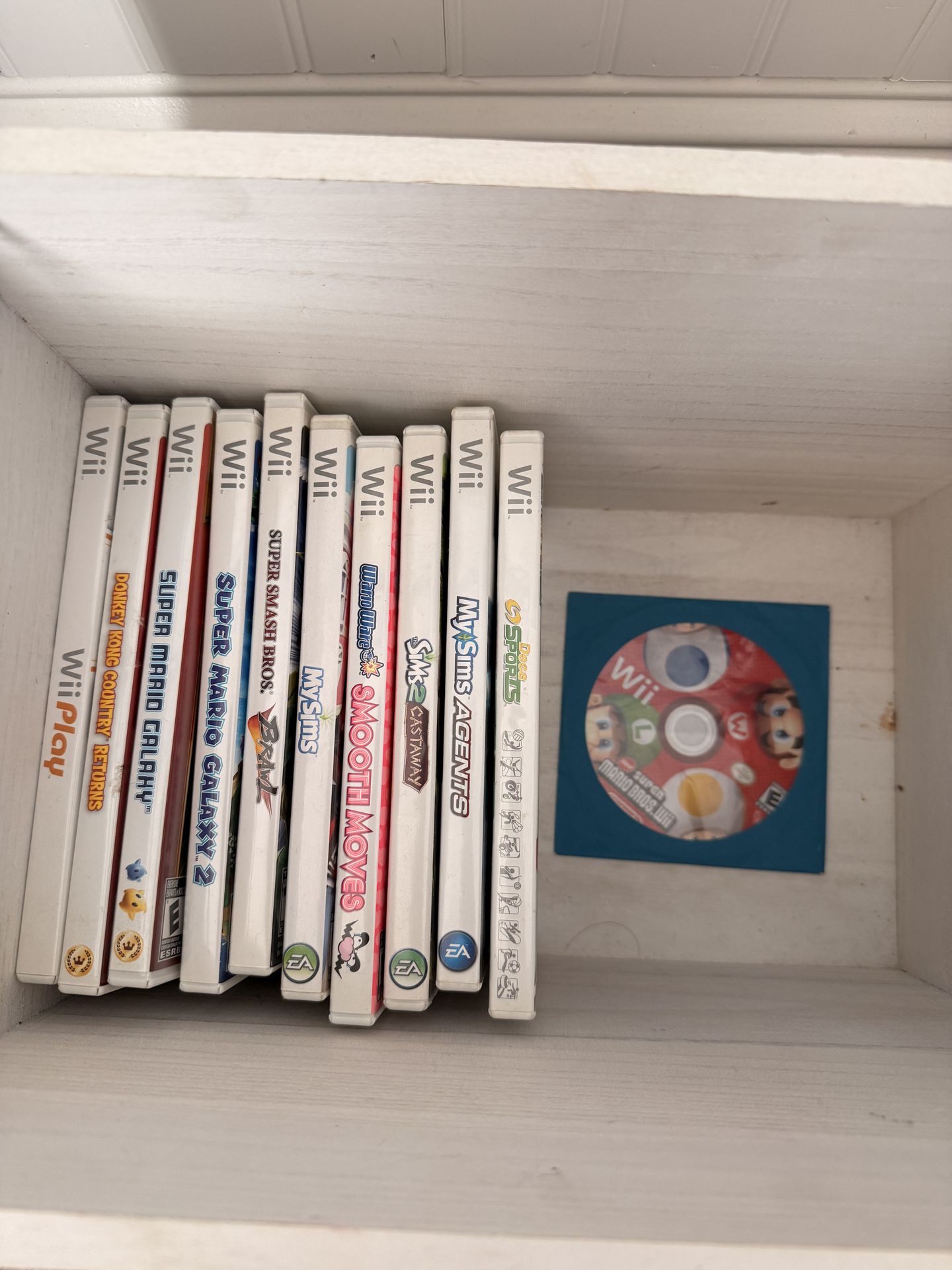 Games include: WiiPlay - $5 Donkey Kong Country Returns - $10 Super Mario Galaxy - $25 Super Smash Bros Brawl - SOLD MySims - SOLD MySims Agents -$2 Sims 2 Castaway -$2 WarioWare Smooth Moves - $20 Super Mario Bros Wii - SOLD Deca Sports -$2