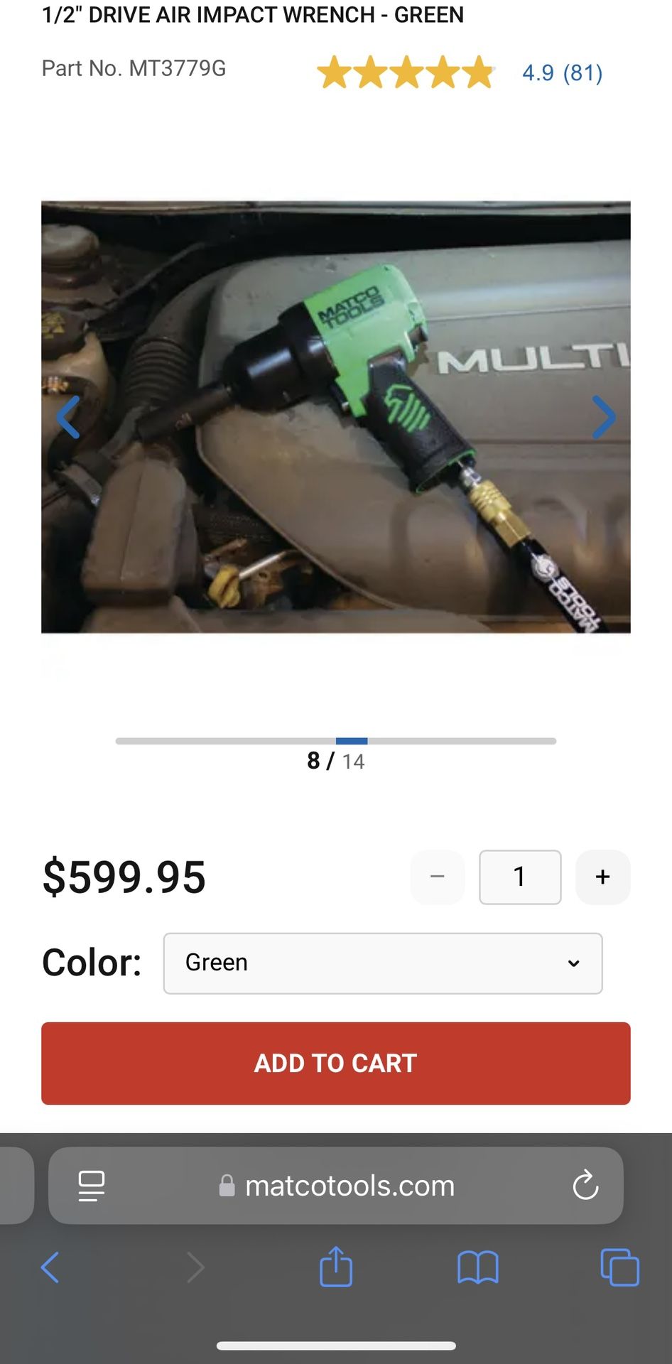 Hello I have this MATCO air impact wrench gun , it works great has a lot of torque, I am hust selling because i switched over to battery power due to not having access to an air compressor anymore. Comes as shown , feel free to test it with your own air compresser . Asking 150 , i am open to offers just don’t low ball . Thank you