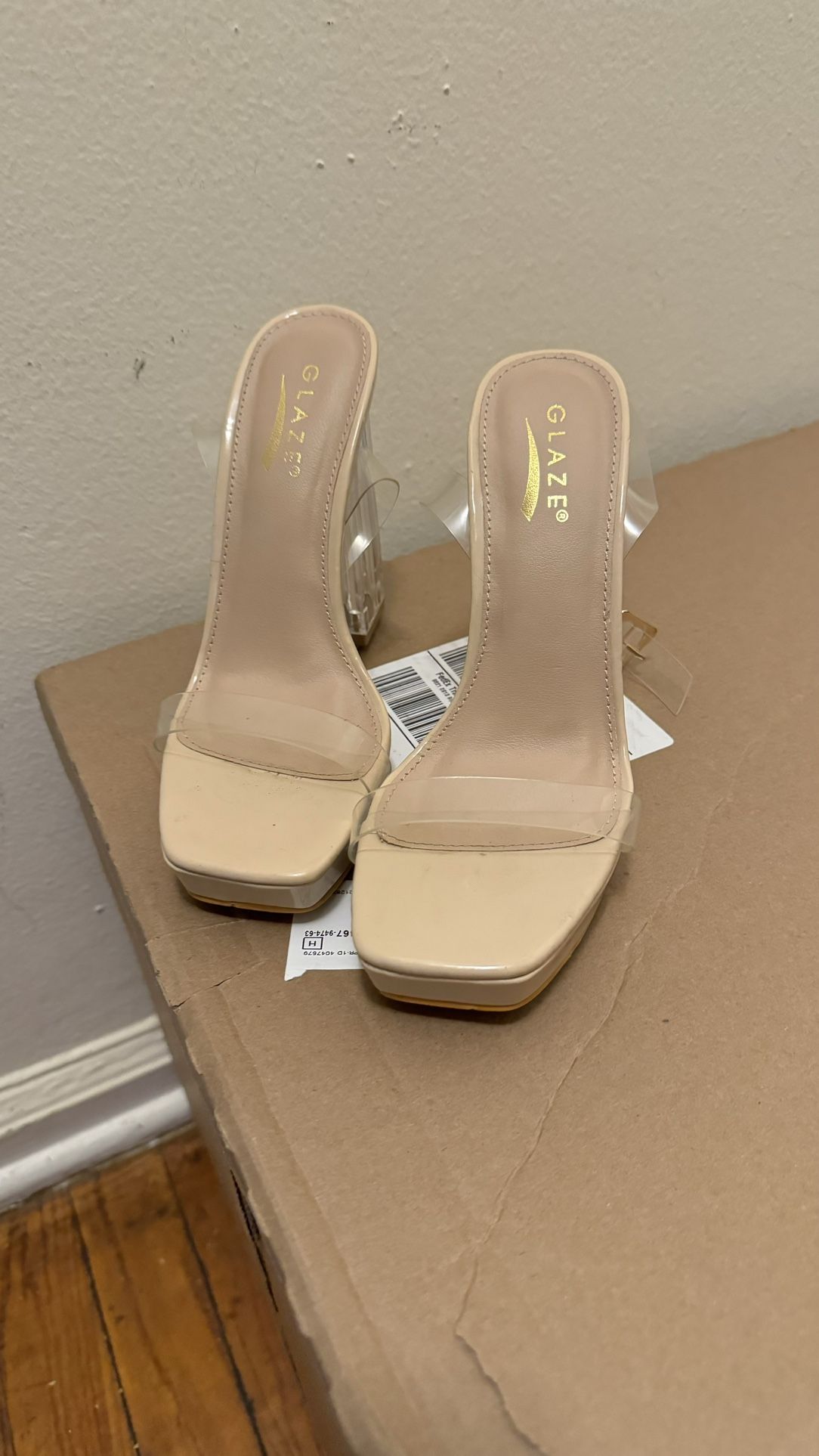 Women's shoes with transparent high heels, worn only once, size 6