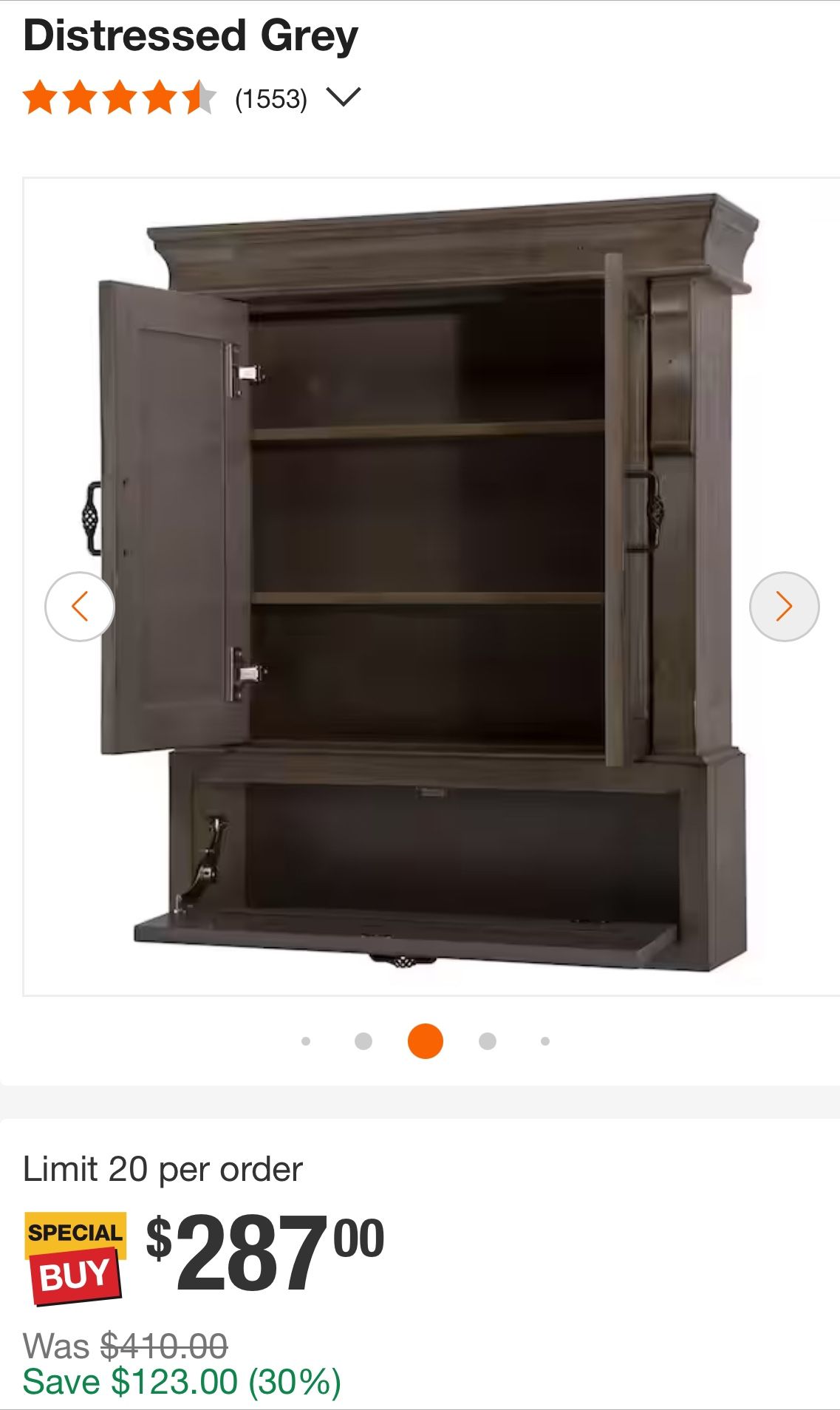 Naples 26.5 in. W x 8 in. D x 32.8 in. H Bathroom Storage Wall Cabinet in Distressed Grey