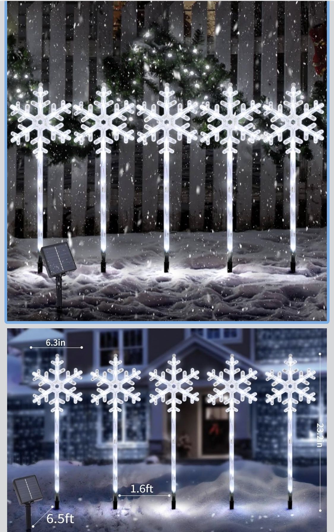 Solar Christmas Lights 5 Pack Snowflake Lights Outdoor with 8 Lighting Modes Christmas Light Decorations IP65 Waterproof Pathway Light Outdoor for Yar