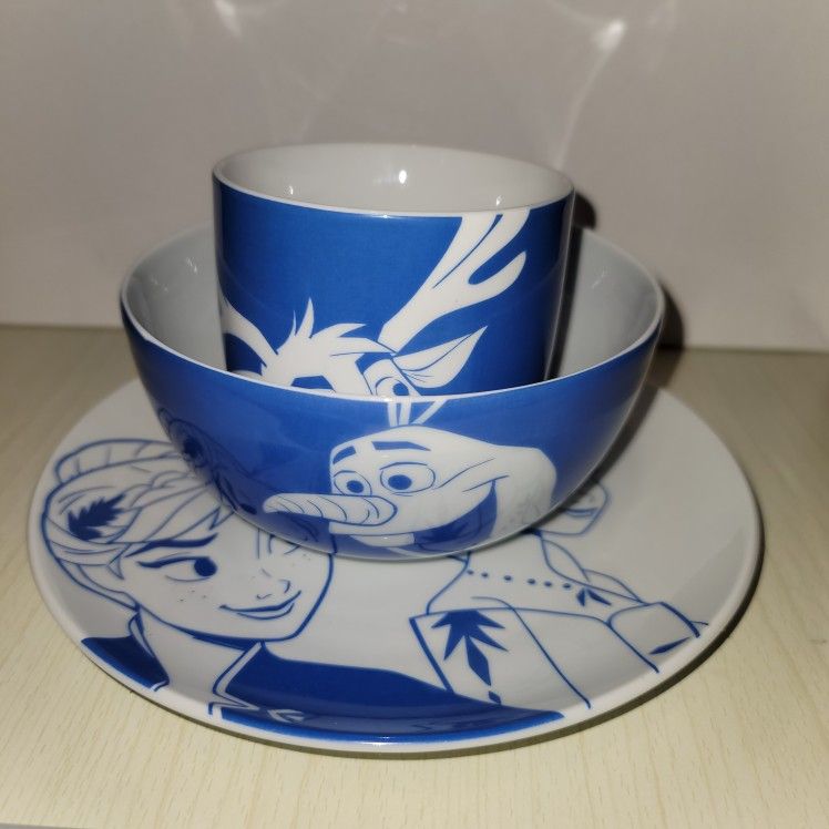 Disney - Frozen Movie Dish Set - Elsa Anna Plate - Olaf Bowl - Sven Mug