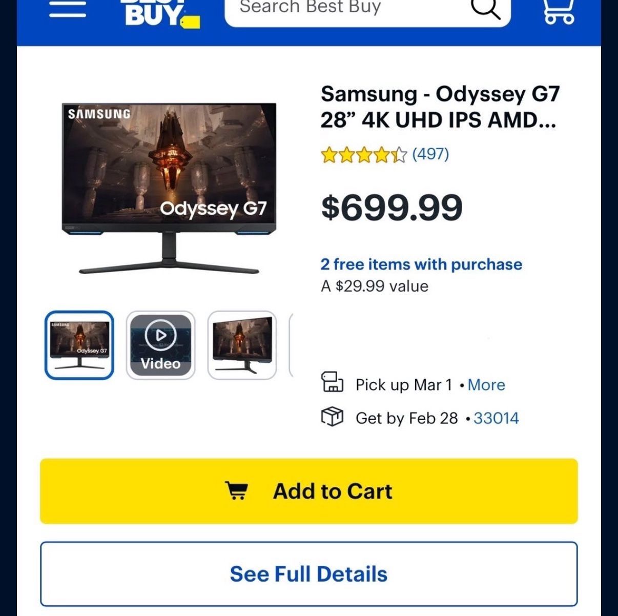 Samsung Odyssey G7 Monitor/ Computer 4K