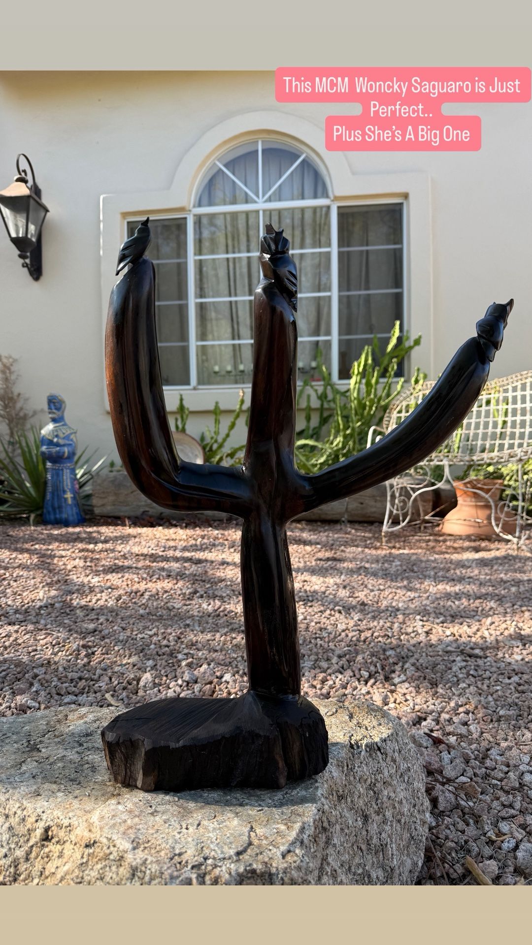 MCM Saguaro Cactus {ironwood} with two Owls & Quail.. The wood comes from the Sonoran Desert.. 22” tall 16” wide Pickup Location N of Dunlap & Central🌵