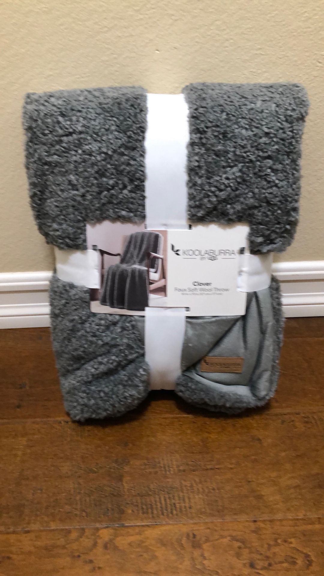 Kookaburra by UGG Clover so soft walk-through 50” x 70” gray double sided reversible New with tags. So soft! Face photo shearling, 100% polyester, reverse 100% polyester