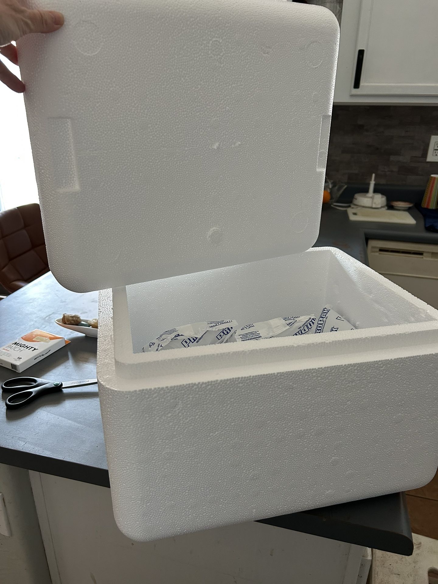 Free Styrofoam cooler and ice packs. Come and get it. Located off of Ray and power.