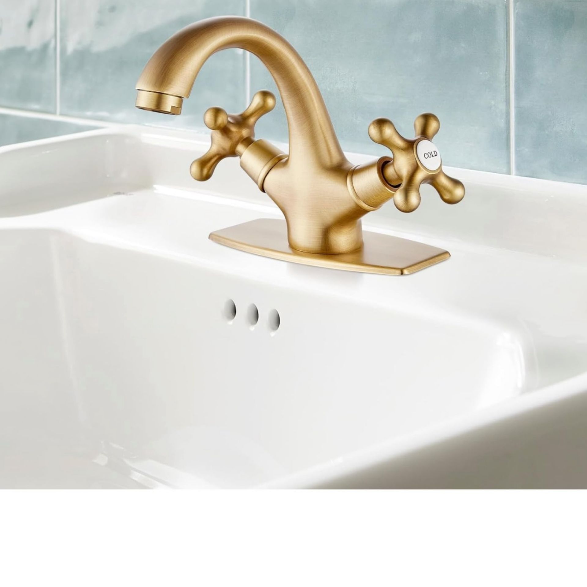 gotonovo Bathroom Sink Faucet Single Hole Double Cross Handle Knobs Lavatory Vessel Sink Mixer Tap Bathroom Black And gold Bronze, A31