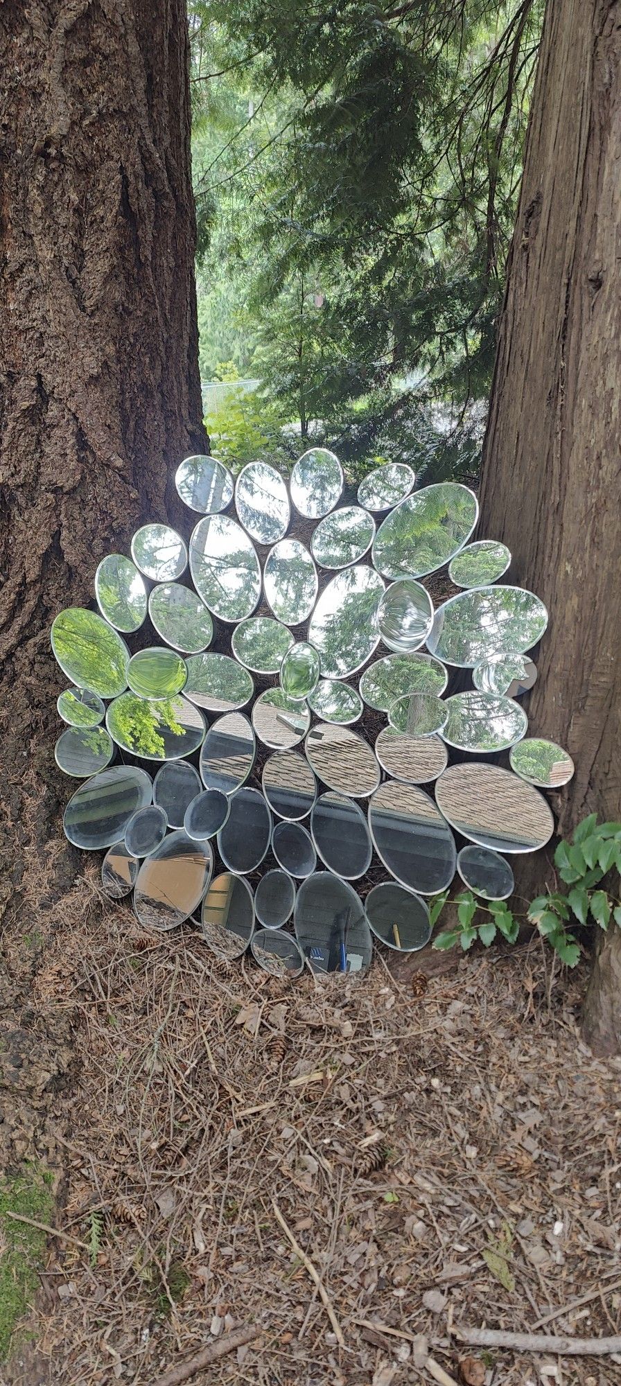 Giving away this mirror. Two of the smaller panes have been cracked and could either be replaced or removed completely. Maybe you replace them with a photo of loved one or pet. Anyhow, I hate to see it go to the landfill so I'm offering it up for free. Cannot deliver, I live in Bellevue and can help load but you would need to pick it up. It's roughly 36 in in diameter.