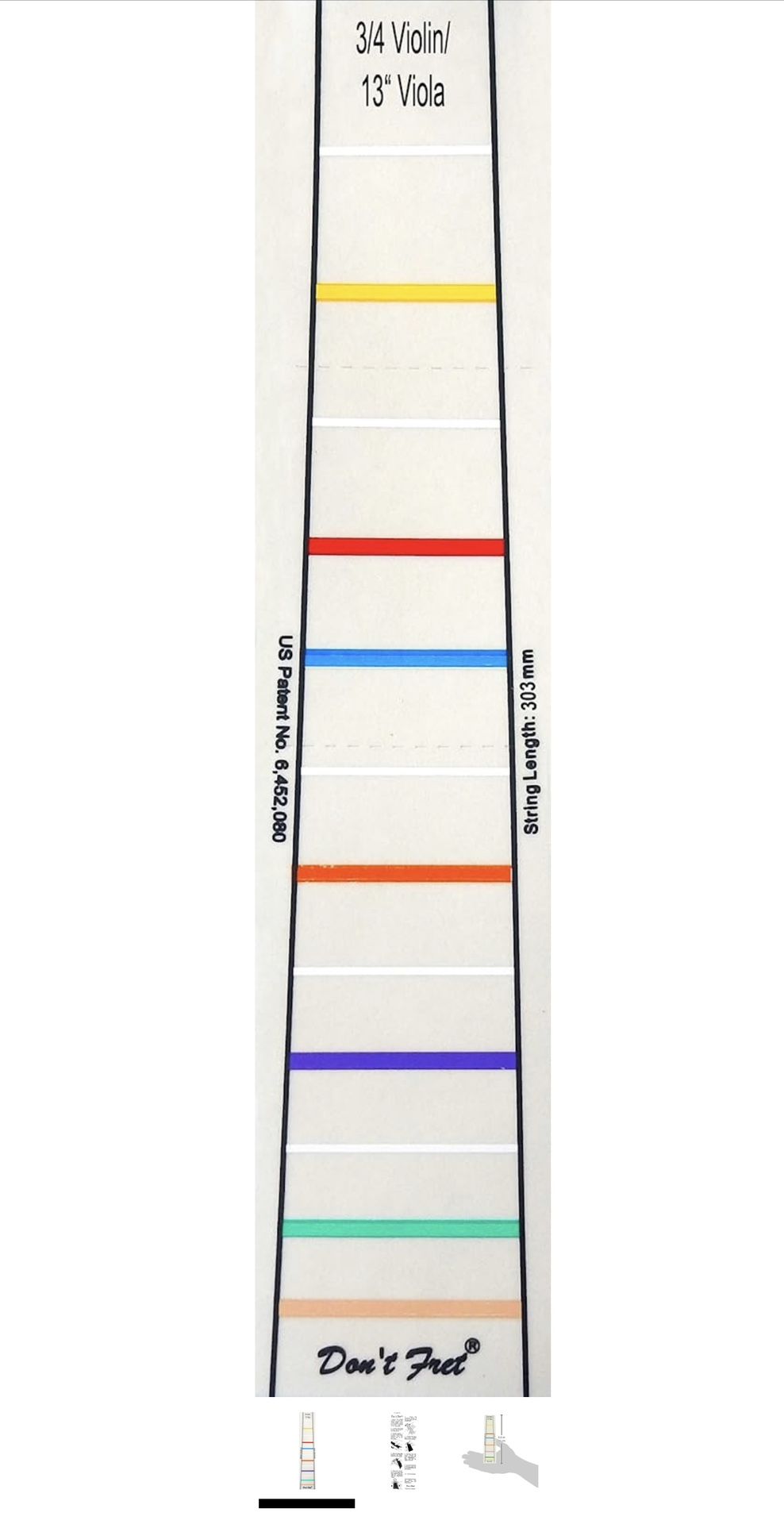 Descripción Don't fret, the patented finger position indicator. Inexpensive, mathematically designed for accuracy, and made of clear, self-adhering vinyl, it applies easily to the fingerboard. Colored lines arranged in a scale pattern show the students exactly where to place their fingers. It gives you a resource for teaching finger positions, scales, keys, and intervals. Whatever your method, Don't fret helps you communicate more effectively. So work hard, but Don't Fret!