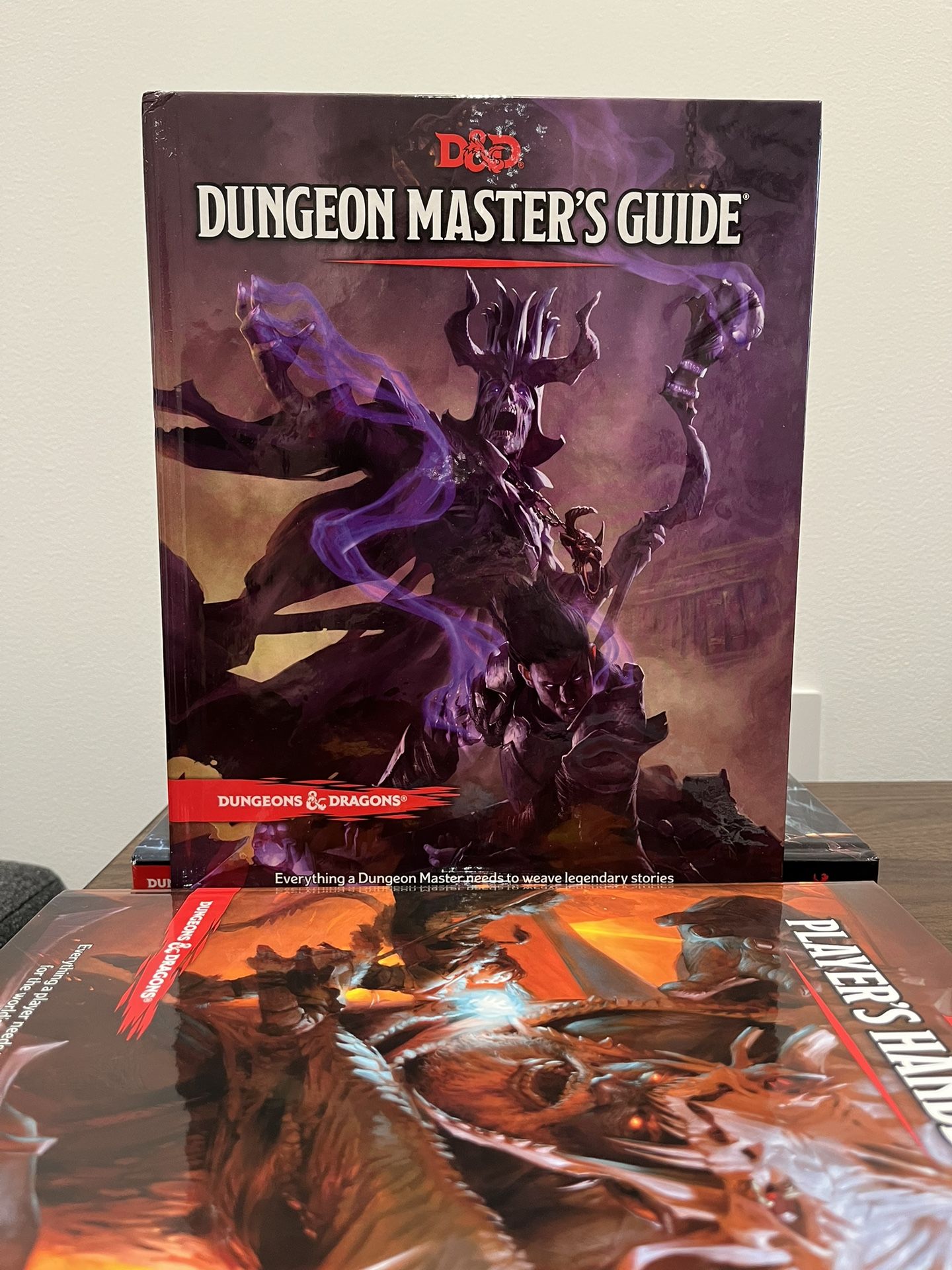 Brand new D&D book set including dungeon master’s guide, monsters manual, and players handbook—everything you need to start playing! Hard cover and great deal! Each book retails for $50 USD.