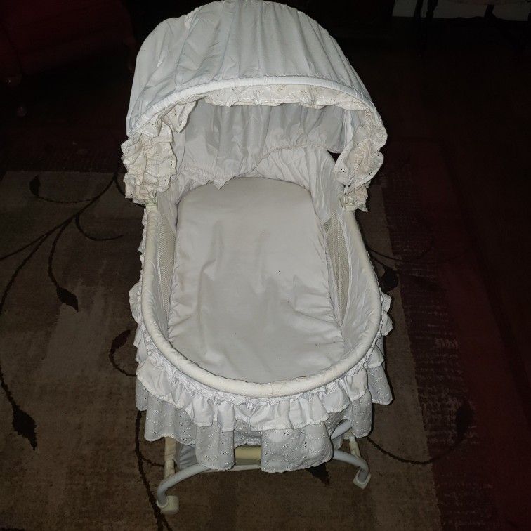 Baby crib with Winnie-the-Pooh Quilt and waterproof changing Cushion.