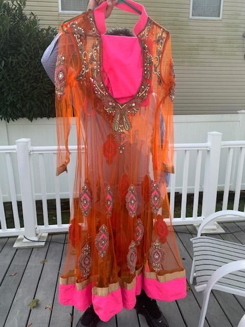 Worn once Size 42 Velvet blouse and hot pink skirt