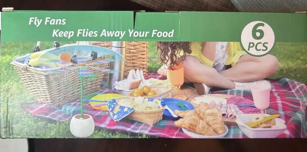 6-piece set of food fly fans – great for keeping flies away during outdoor meals. Ideal for BBQs, picnics, patio dining, camping, and parties. Safe, soft blades that automatically stop when touched. Lightweight and easy to use. Brand new in original packaging. Moving sale. Good condition and relatively new. Pickup only. Cash preferred. Located near South Fry and Stonelodge st