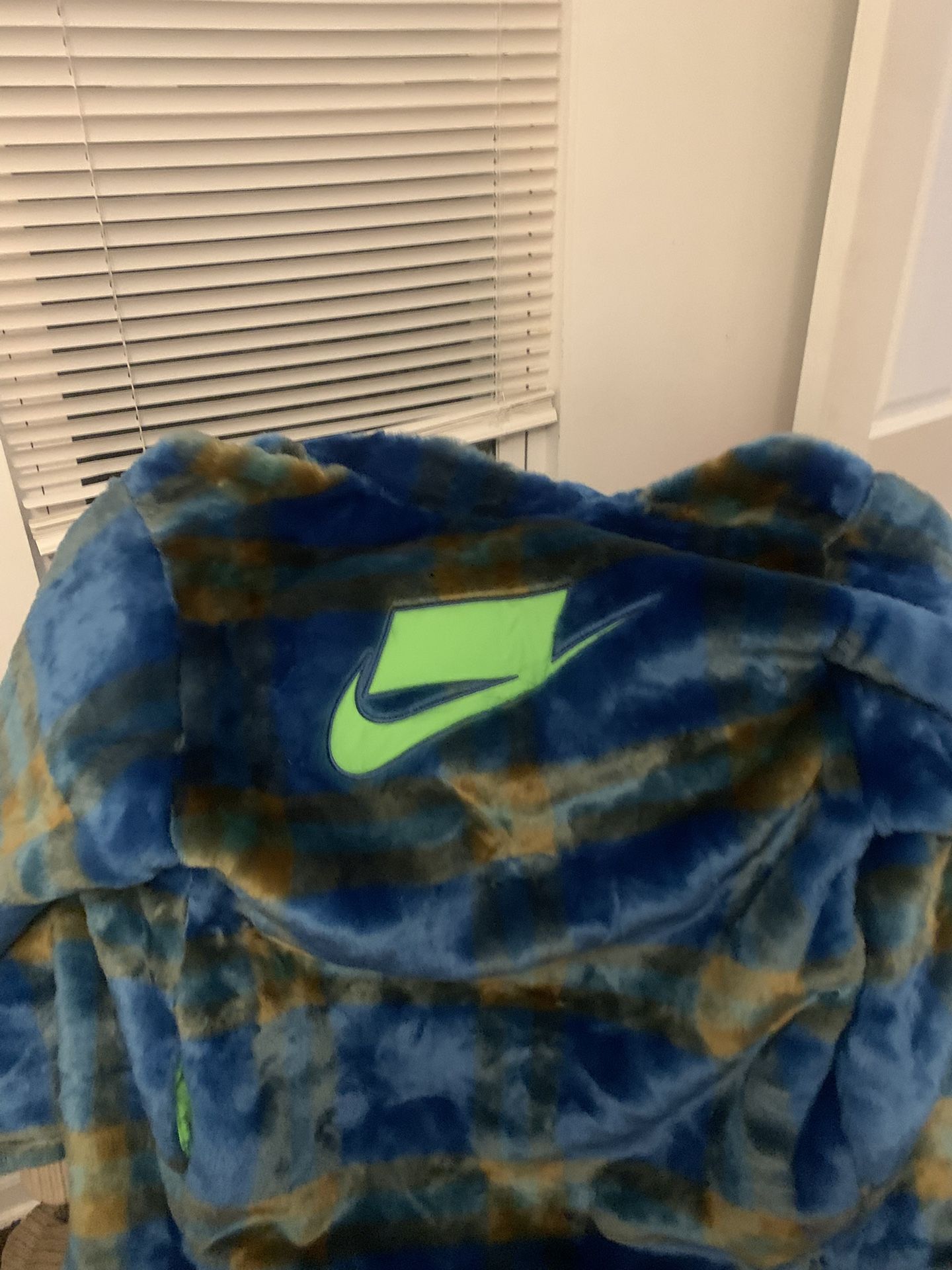 Nike fox fur coat it is a small and women's it's supposed to be an oversized coat but I'm a 6 foot 200 pound guy and this is how it fits me