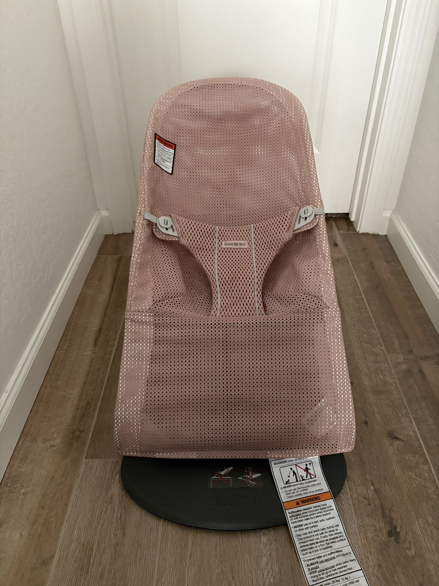 Pink mesh Baby Björn bouncer